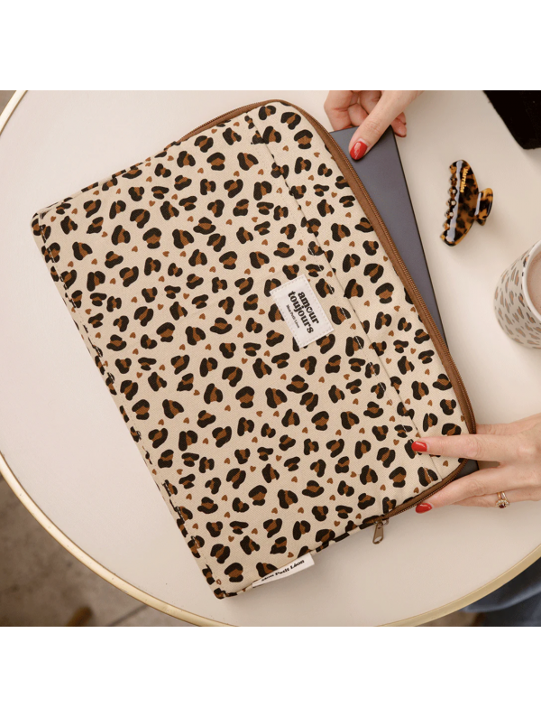 Housse d'ordinateur Léopard coeur